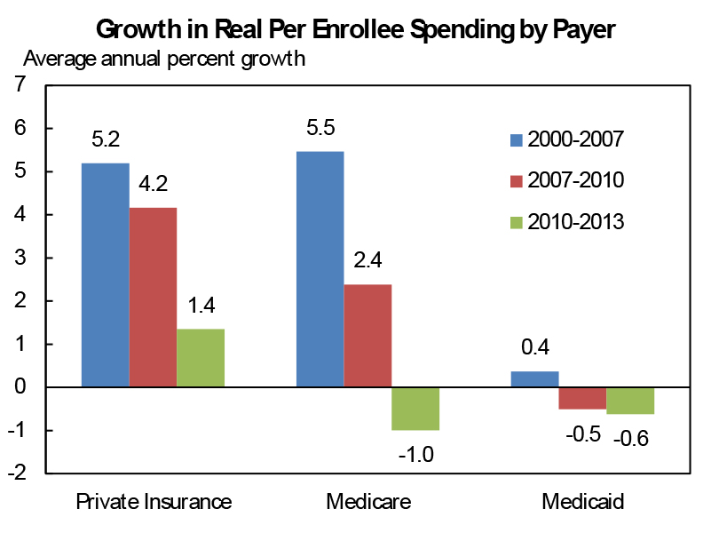 Meanwhile, over the past five years, we are seeing an unpredicted and astonishing decrease in the growth rate of U.S. health care costs, affecting Medicare, Medicaid, and private health insurance. Yes, premiums and other costs are still going up, though by the