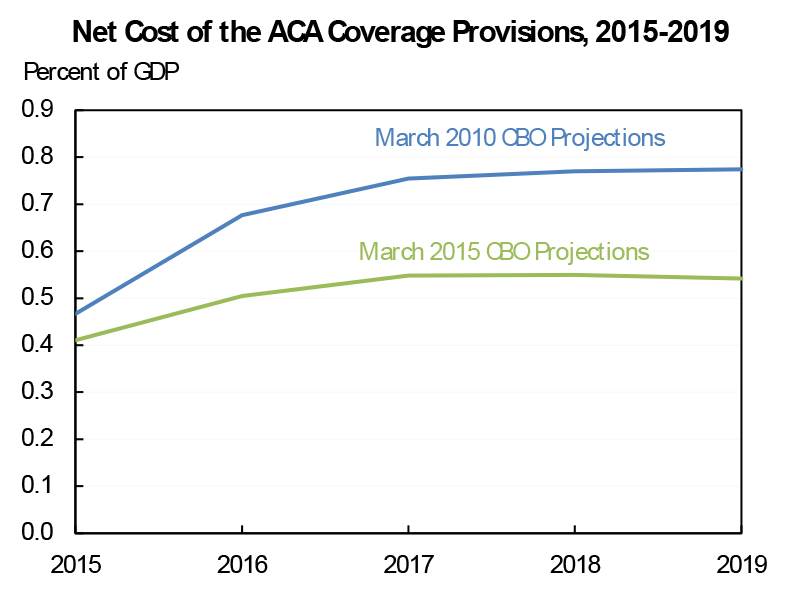 That’s never been true, and it’s less and less so as the projected costs of the ACA come in far below the 2010 estimates. The Congressional Budget Office projections have been repeatedly downgraded since the law was signed in March 2010, most recently last month.